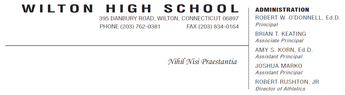 Wilton High School strives to foster inquiry, innovation, and creative expression through authentic and personalized learning experiences. Our students and staff will contribute to the global community through their leadership, integrity, scholarship, and empathy.